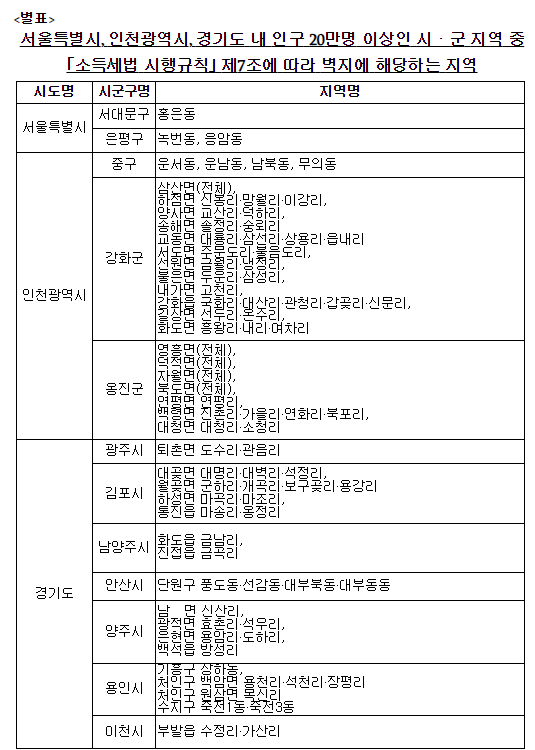 ✔ 경기도 내 인구 20만명 미만 시·군 지역